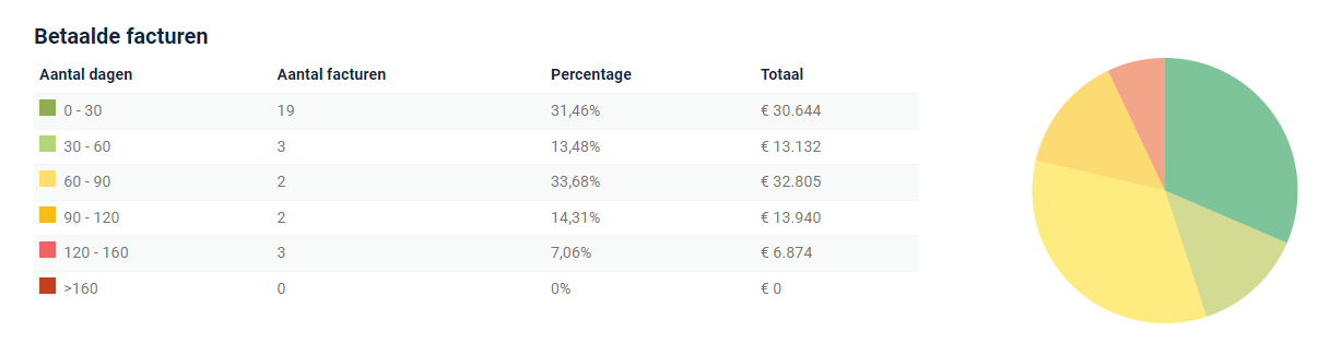 Als je op "Bekijk details" klikt, krijg je in detail te zien hoe snel het bedrijf zijn facturen betaalt.