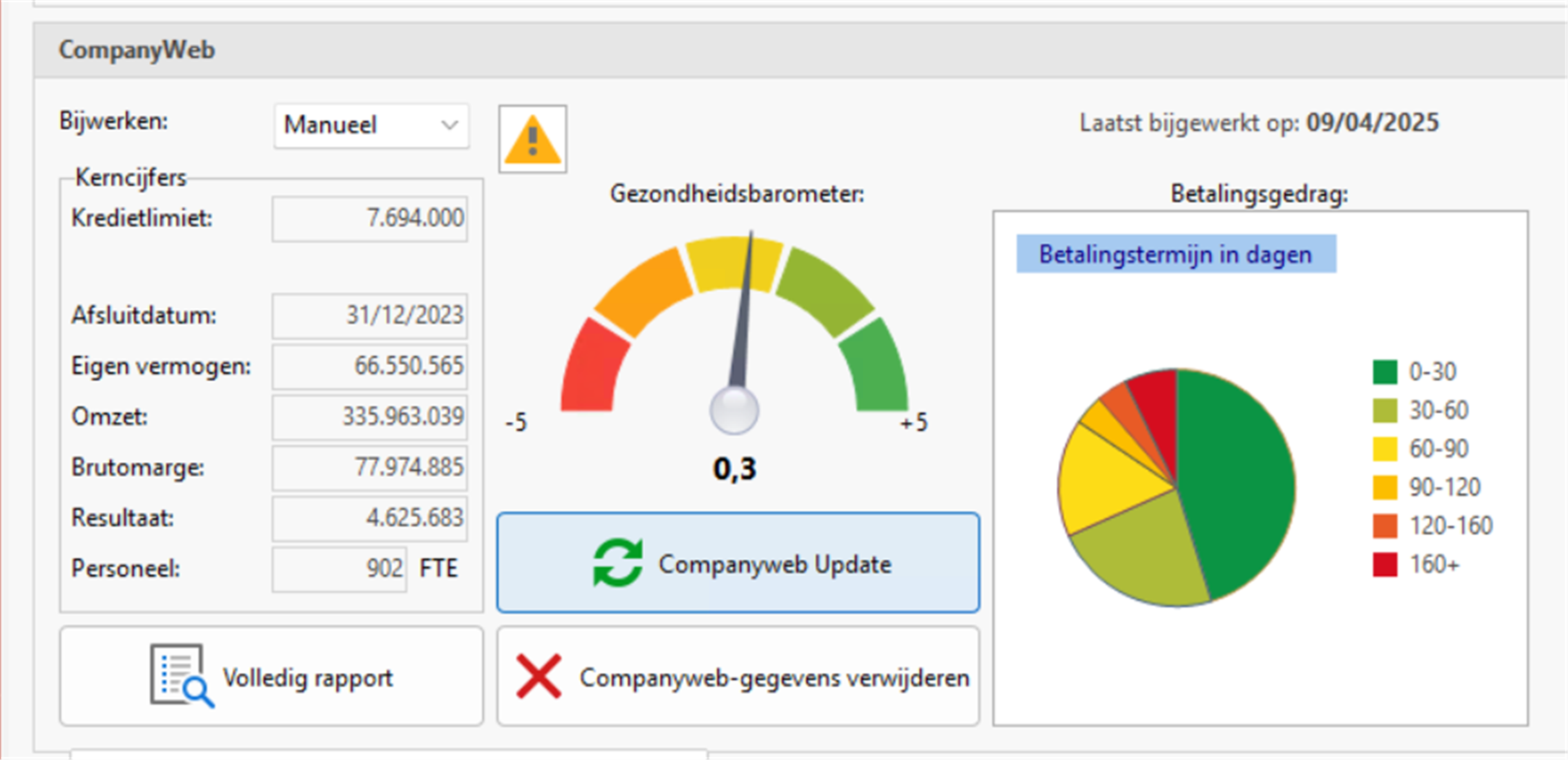 Met de integratie van Companyweb kan je adhv het btw-nummer een klanten- of leveranciersfiche aanmaken.